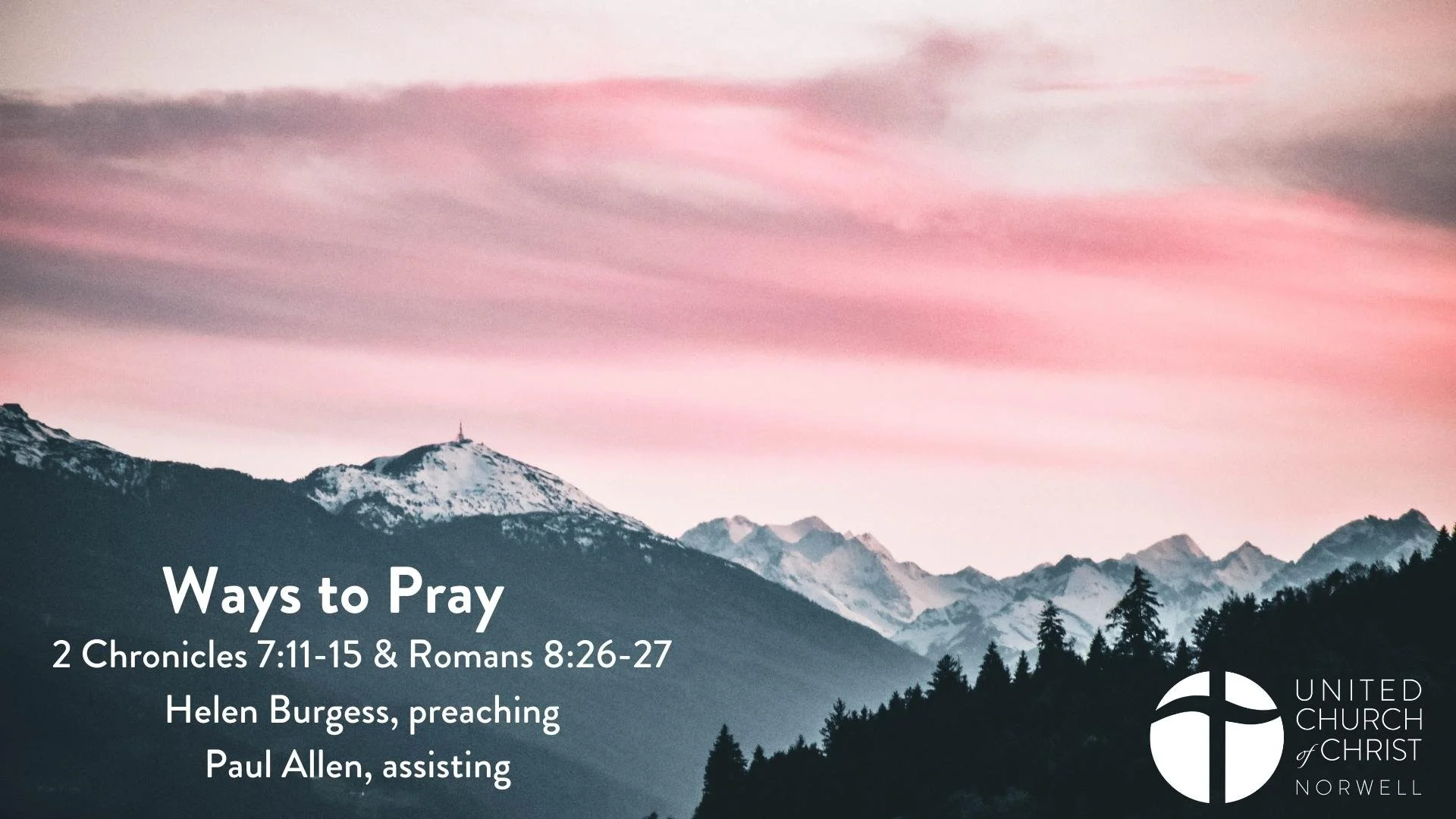 Ways to Pray Jan 9 Written By John Galvin Helen BurgessJanuary 9, 2022Bible Passage 2 Chronicles 7:11-15, Romans 8:26-27 Listen to Sermon John Galvin