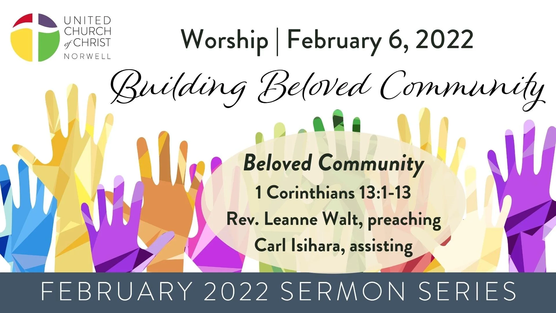 Beloved Community Feb 6 Written By John Galvin Rev. Leanne WaltJanuary 23, 2022Bible Passage 1 Corinthians 13:1-13 Listen to Sermon John Galvin